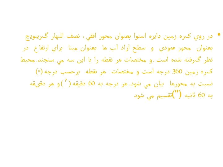• Angle expressed in Degree-Minute-Seconds (DMS) or in Decimal Degrees (DD) As for latitude and longitude, there are three to describe coordinates: degrees, minutes and seconds: degrees and decimal minutes: decimal degrees: N 40° 23’ 45” W 98° 12’ 06” N 40° 23. 75’ W 98° 12. 1’ N 40. 395° W 98. 201° Each of the above sets of coordinates represent the same location. To convert seconds to decimal minutes, divide the seconds by 60 to get decimal minutes. To convert decimal minutes to decimal degrees, divide the decimal minutes only by 60 to get decimal degrees.