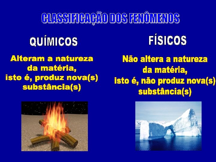 05) (CEESU – 2003) Fenômeno químico é aquele que altera a natureza da matéria, isto é, é aquele no qual ocorre uma transformação química. Em qual alternativa não ocorre um fenômeno químico? a) A formação do gelo no congelador. b) Queima do carvão. c) Amadurecimento de uma fruta. d) Azedamento do leite. e) A combustão da parafina em uma vela.