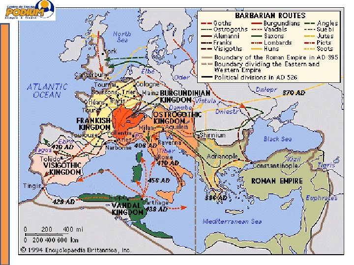 O IMPÉRIO ROMANO O Baixo Império Longo período de decadência O Baixo Império de Roma • • Crises políticas: sem critério definido para sucessão; Colapso do escravismo; Economia em crise: impostos altos e inflação; Fronteiras desprotegidas: falta de soldados; Difusão do Cristianismo; Queda nas atividades produtivas; População urbana: migração para interior.