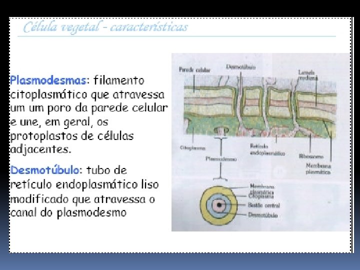 Modificações da parede celular Algumas das modificações não afetam a morfologia da parede, mas suas propriedades químicas e físicas. ØLignina - associada à celulose na parede celular cuja função é de conferir rigidez, impermeabilidade e resistência a ataques microbiológicos e mecânicos aos tecidos vegetais. Ø Um dos principais objetivos da fabricação de papel é reduzir o conteúdo de lignina na madeira a fim de produzir a massa de papel. Ø Na nutrição humana são consideradas fibras dietéticas indigeríveis. Estão presentes nas partes mais endurecidas de alguns alimentos vegetais como cenoura, brócolis, sementes e frutas tais como o morango.