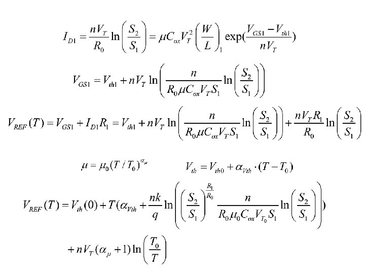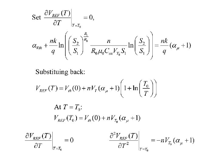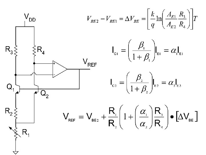 For the silicon, α=7. 021× 10 -4 V/K, β=1108 K, VG(0)=1. 17 V Since R 1=R 2, we know IC 1 = IC 2. Solving for Vbe 2: Substituting back