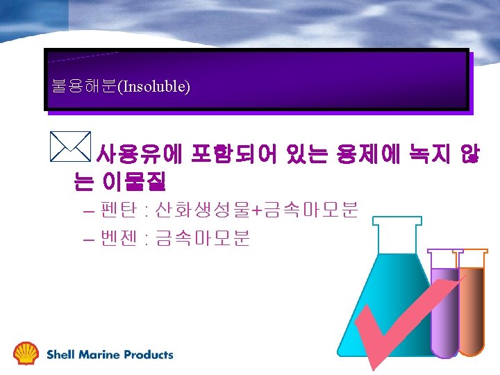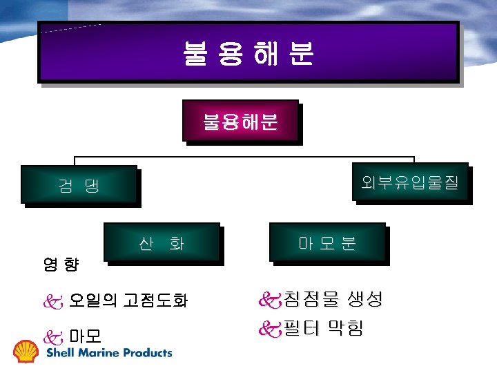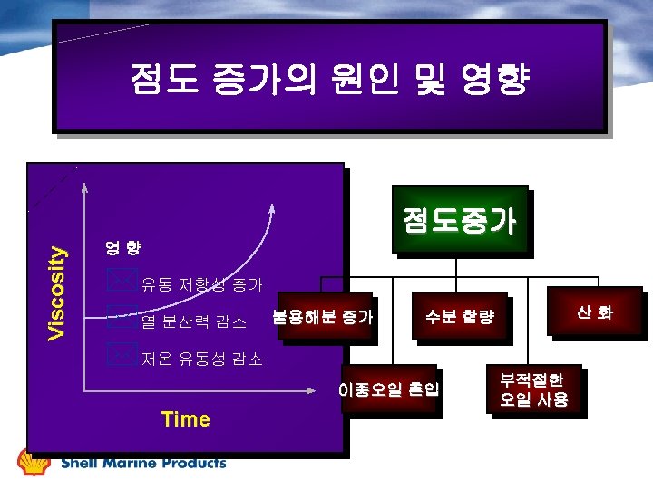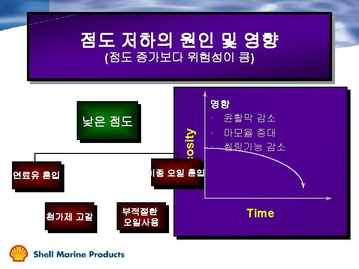 Oil Condition Change During Service 점도 TBN 금속분 불용해분 가동시간