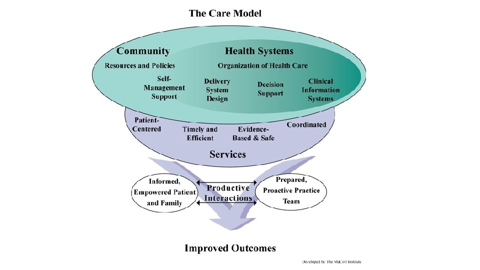 Primary Care 2025 Predictions • The resulting policies accelerated the evolution of PCMHs into CCHHs, which provide primary care to 85% of the population. • This care is fully capitated in 2025. • About 10% of the population receives fee-for-service (FFS) “concierge” care aimed at the very rich, who have insurance but pay additional fees for special services; 5% of the population remains uninsured in 2025 and gets primary care, if and when they get it, from emergency rooms and community health centers (CHCs). • Institute for Alternative Futures. Primary Care 2025: A Scenario Exploration. Alexandria, VA. January 2012. Available from http: //www. altfutures. org/pubs/pc 2025/IAF-Primary. Care 2025 Scenarios. pdf.