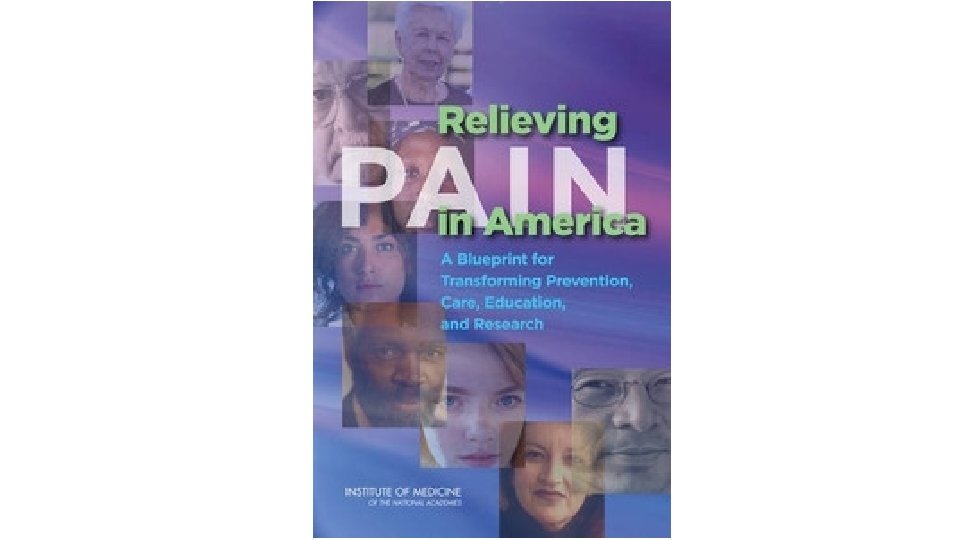 Inadequate Pain Treatment • Currently, large numbers of Americans receive inadequate pain prevention, assessment, and treatment, in part because of financial incentives that work against the provision of the best, most individualized care; unrealistic patient expectations; and a lack of valid and objective pain assessment measures. • A Call to Revolutionize Chronic Pain Care in America: An Opportunity in Health Care Reform