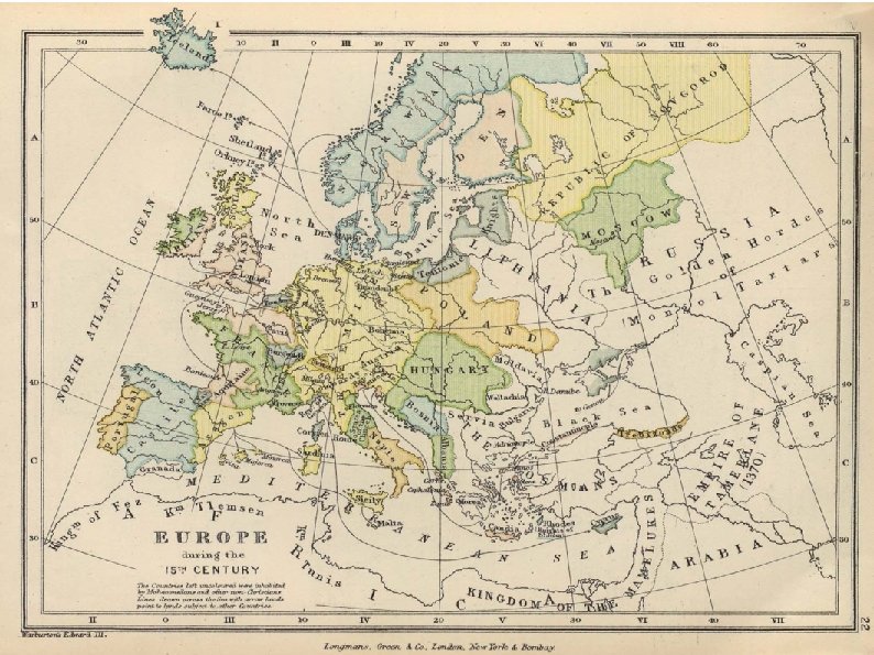Conquista da América Série de expedições ao final do século XV – Colombo, Américo Vespúcio, Vasco da Gama, Pedro Álvares Cabral. Busca de rota para as Índias América como um novo mercado – Ouro e especiarias. Tratado de Tordesilhas – 1494.