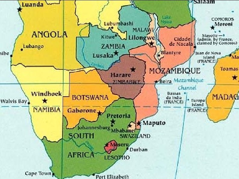 : : : A descolonização da África : : : África Inglesa: a estratégia do governo britânico foi transferir o poder para as mãos de líderes escolhidos por um representante do governo inglês. Acirrou as disputas étnicas. África Francesa: foi de certa forma pacífico. Lei-Quadro: os colonos de cada território teriam direito de voto para eleger representantes para as assembleias locais e para os conselhos de Estado. Formação da Comunidade Francesa, com o francês como língua oficial. O que permitiu que os movimentos de independência ocorressem de forma negociada. Com exceção da Argélia.