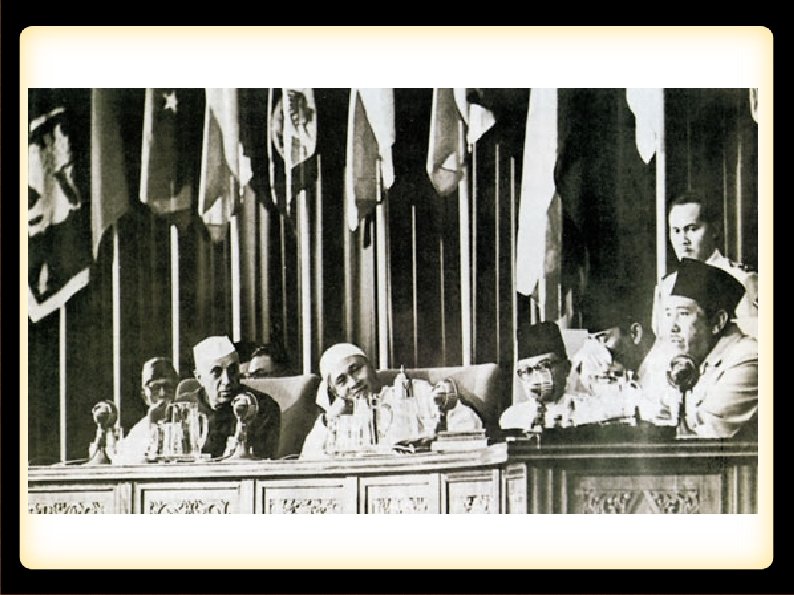 : : : A Conferência de Bandung (1955) : : : 29 países africanos e asiáticos reunidos na Indonésia. Discutiram políticas de cooperação mútua e estratégias para preservar a independência. A decisão do não-alinhamento nem aos EUA, nem à União Soviética (URSS) teve grande repercussão mundial.