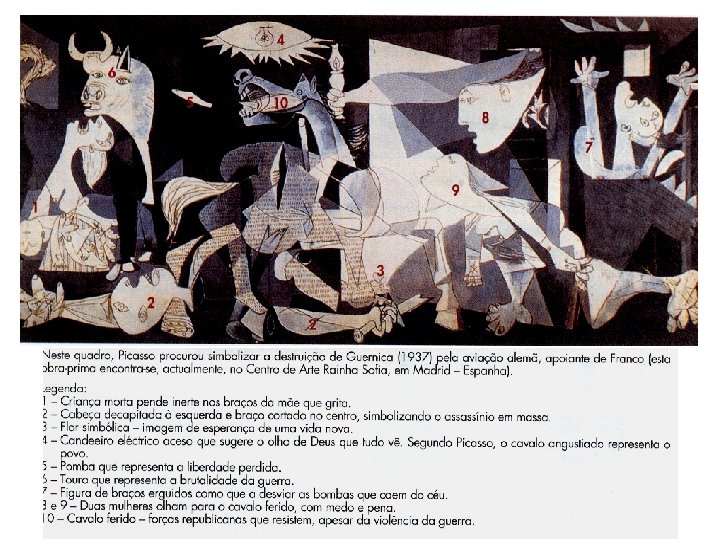 A Guerra Civil Espanhola • As forças franquistas tiveram um apoio significativo da Alemanha, esta que aproveitou o conflito interno espanhol para testar o seu armamento e material bélico, nomeadamente no que toca à aviação – Legião Condor. • A Guerra Civil durou 3 anos, onde se verificou um saldo desastroso de 400. 000 mortos e dezenas de cidades destruídas. O caso mais célebre, a cidade basca de Guernica • Acerca desta cidade, Ernest Hemingway escreveu uma obra intitulada: “Por Quem os Sinos Dobram”