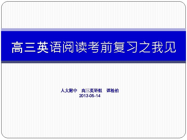 感谢聆听! 谭松柏 tansongbai@rdfz. c n