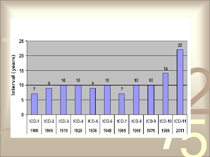 3. Classificações de Referência - CID-10 Versão Ano No Códigos CID 1893 161 CID-1 1900 179 CID-2 1909 189 CID-3 1920 200 CID-4 1929 200 CID-5 1938 200 CID-6 1948 952 CID-7 1955 952 CID-8 1965 1040 CID-9 1975 6701 CID-10 1990 12420