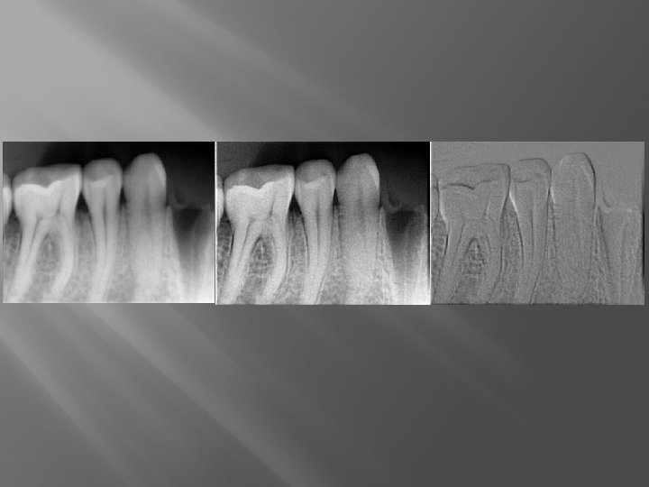 A digitális radiográfia sugárvédelmi vonatkozásai � � � Az intraoralis felvételeknél kisebb a sugárdózis Elektronikusan archiválható, sokszorozható (az ismétlések kikerülhetőek) A software előnye: � Megspórolhatunk újabb felvételeket A túl-, vagy alulexponált filmek megmenthetők Nagyítani tudunk Változtathatjuk a kontrasztot, az élességet