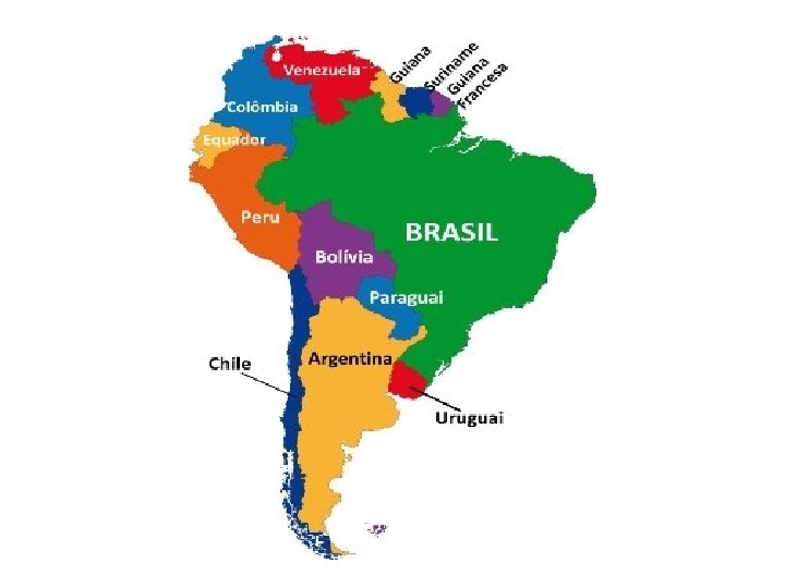 • Falar sobre a localização do Brasil é falar de sua posição geográfica com relação ao mundo. • O Brasil está localizado em um continente chamado América do Sul. Ele faz divisa com outros 10 países diferentes. Assim, as fronteiras do nosso país só não estão localizadas ao lado de dois países da América do Sul: Chile e Equador. Observe o mapa abaixo: