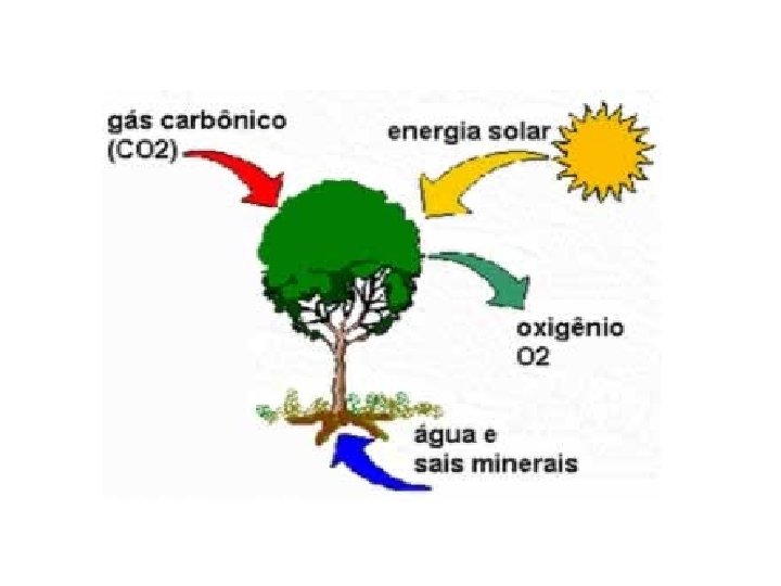 • Todas as plantas são capazes de produzir o seu próprio alimento, mas como será que isso acontece? • Elas conseguem produzir o próprio alimento através de um processo que chamamos de fotossíntese. As plantas precisam de três ingredientes básicos para realizar a fotossíntese: a luz solar, a água e o gás carbônico (CO 2).