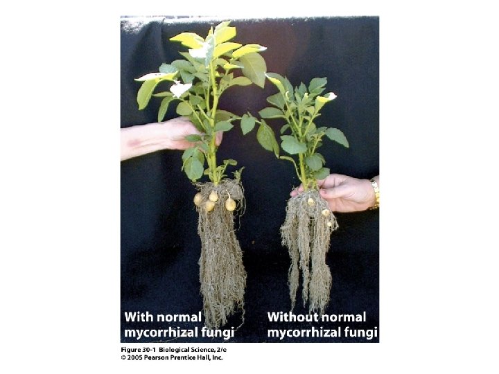 Fungi as partners with plants: Mycorrhizae Importance of mycorrhizae discovered in ‘ 70’s. Failure of pine plantations key observation.