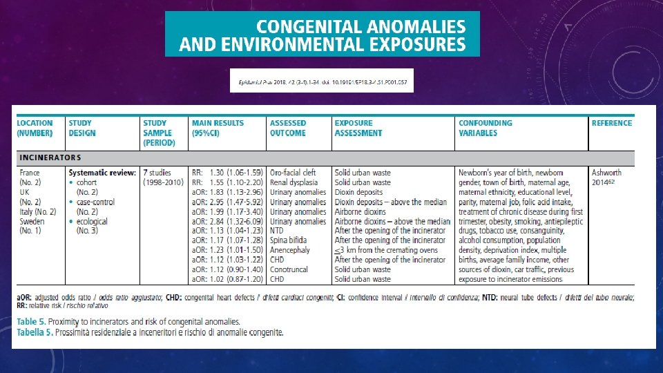 Incremento di abortività spontanea: • Analizzate 11. 875 gravidanze con 1375 casi aborto spontaneo in residenti entro 4 km dagli impianti ed esposte a PM 10, fra le esposte nel più alto quartile verso le non esposte : • OR= a 1. 29, (95% CI 0. 97 -1. 72) • nelle donne senza precedenti aborti: • OR= 1. 44 ( 95% CI 1. 06 -1. 96). Environ Int. 2015 May; 78: 51 -60. . Epub 2015 Mar 10. Candela S, Bonvicini L, Exposure to emissions from municipal solid waste incinerators and miscarriages: A multisite study of the MONITER Project. • Incremento di nascite pre-termine “… Lo studio ha invece rilevato una associazione coerente e statisticamente significativa tra livelli di esposizione ad emissioni da inceneritore e nascite pretermine» . Candela S, Ranzi A Air pollution from incinerators and reproductive outcomes : a multisite study. Epidemiology. 2013 Nov; 24(6): 863 -70