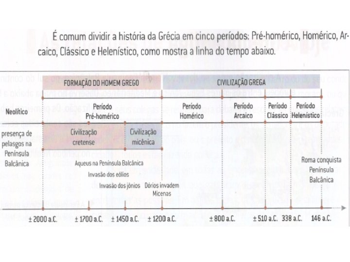 Período Pré-Homérico • Civilização Cretense, na Ilha de Creta – Cnossos provavelmente foi a capital. Os reis eram chamados minos. • Civilização Micênica, no Continente. Os aqueus entraram em contato com os cretenses, assimilaram seus conhecimentos e os conquistaram. Fundaram a cidade de Micenas. • Por volta do ano 1200 a. C. , três povos invadiram a Grécia: • os jônios eólios dominaram a Grécia Continental (fundaram Atenas e Tébas, respectivamente); • os dórios invadiram e dominaram o Peloponeso, conquistaram a Civilização Micênica e fundaram Esparta.