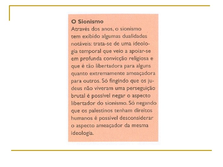 Origens do conflito moderno n n n Sionismo Imperialismo Britânico Partilha de 1947 “Guerra dos Seis Dias” Intifada( 1987 -1993) Nova Intifada (ou Al-Aqsa) 2000 ao presente.