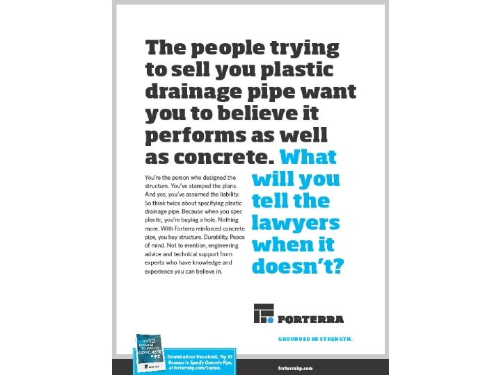 56 Liability & Risk • Concrete Pipe: Little or None • Plastic Pipe: § § § No structural design Trench Boxes Flotation Thermal Effects Reduced Hydraulics Fires