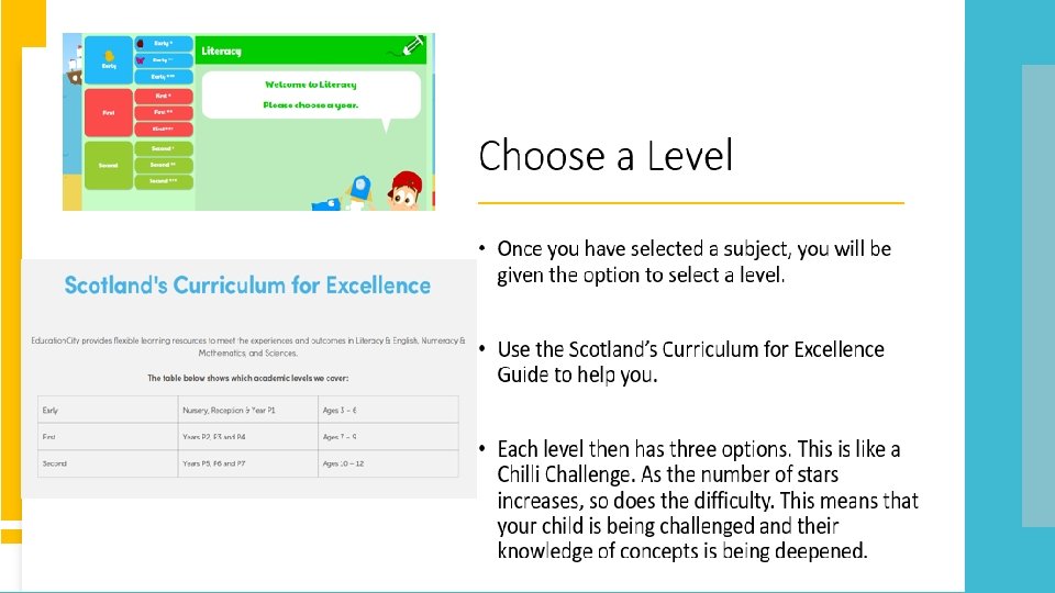 Subjects • Education City offers support in Literacy, Numeracy and Science. • By clicking on the Subjects tab, you can access all learning videos, games and worksheets related to each concept. The ‘Subjects’ area of Education City is extremely useful for The ‘Subjects’ Education City is extremely pupils while we pupils whilearea we of complete distance learning. useful Pupilsforhave the complete distance learning. Pupils have the opportunity to take charge of their own learning by accessing these activities whenever they want to. these activities whenever want Education City allows pupils to they further theirto. knowledge of concepts they pupils to further of concepts have already learnedtheir aboutknowledge as well as having a look atthey some newalready learning. learned about as well as having a look at some new learning.