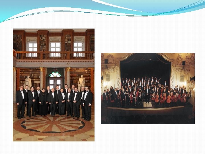 Zenekarok a komoly zenében Barokk zenekar �kevés számú hangszer (10 -12) �csak vonós hangszerek + continuó (kíséret) �a zenészek félkörben állva muzsikálnak �a vezető a continuón (ált. csembaló) játszik Szimfonikus zenekar (klasszicizmus) �nagy létszámú együttes (kb. 50 fő) � 4 hangszercsoport: vonós, fafúvós, rézfúvós, ütős �félkörben ülve zenélnek �karmester irányítja (dirigálja) az együttest