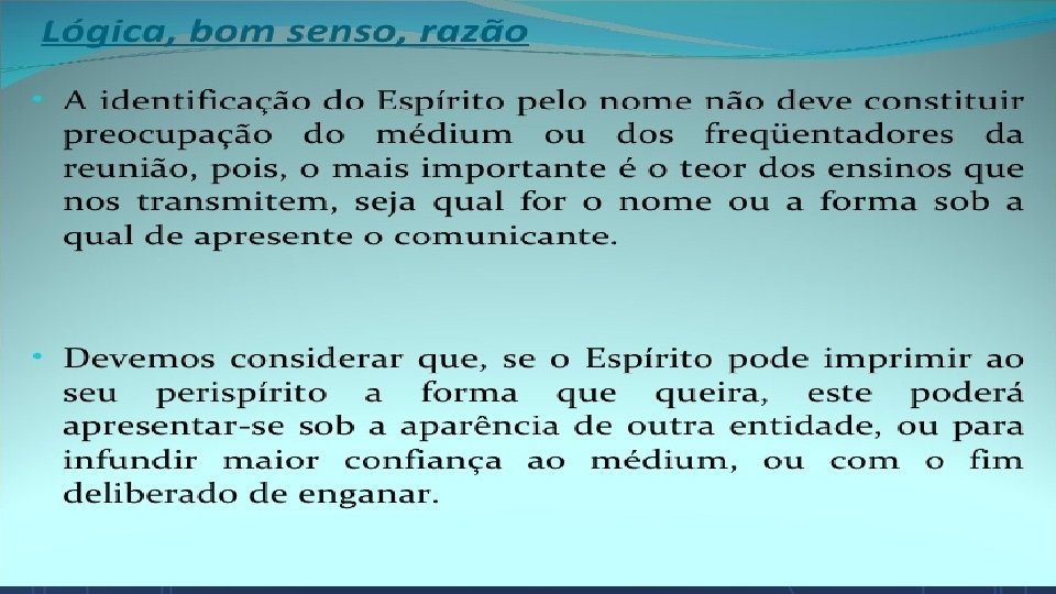 A LÓGICA, O BOM SENSO E A RAZÃO A questão da identidade dos Espíritos é uma das mais controvertidas, porque os Espíritos não nos podem apresentar documento de identidade e alguns deles tomam nomes que nunca lhes pertenceram. Por essa razão, esta é, depois da obsessão, uma das maiores dificuldades do Espiritismo prático, embora constitua, em muitos casos, uma questão secundária e sem real importância.