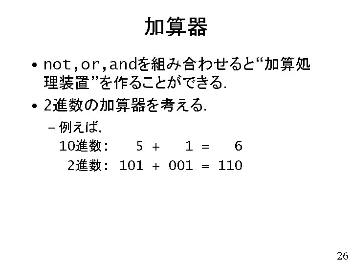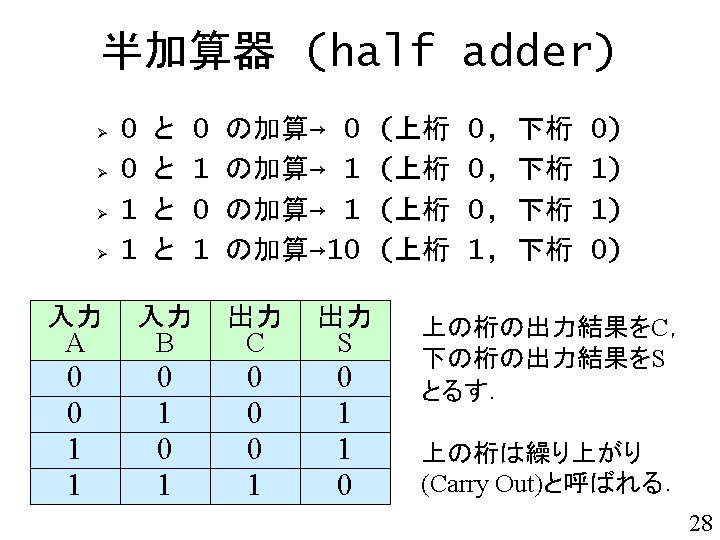 論理回路 x y z xor and 入力 x 入力 y 出力 z 0 0 0 0 1 1 1 0 0 1 1 1 1 0 24
