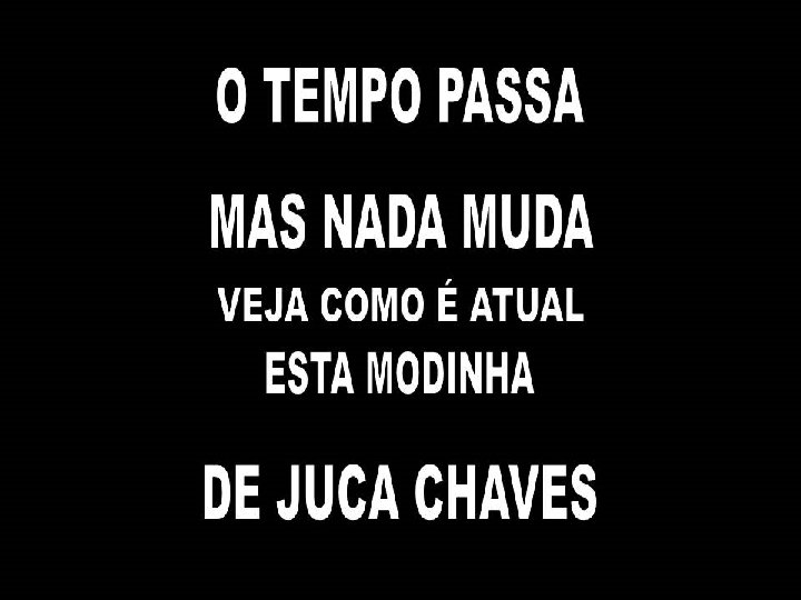 A intenção aqui é mostrar que muitos fatos costumam se repetir na história, como se pode perceber , por quem ouviu esse menino, Juca Chaves, em uma interpretação de sua própria autoria.