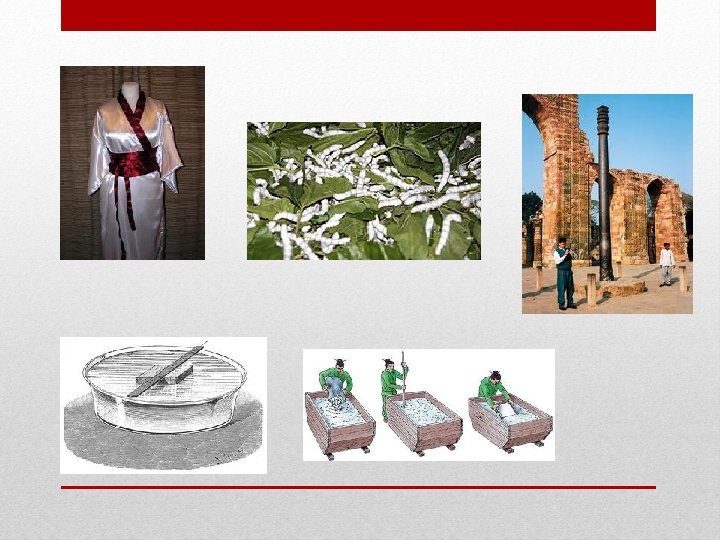 A kínai és hindu kémia • i. e. 2630: selyemhernyó-tenyésztés Kínában • Fejlett bányászat és kohászat: • úszó mágnestű – hajózás! • i. e. 850: Indiában elkészül a híres, máig sem rozsdásodó kovácsoltvas oszlop • i. e. 750: Kínában elsőként olvasztottak ás öntöttek vasat • i. e. 210: kínai porcelán (Kaoling-hegyből „kaolin”) • i. sz. 105: Caj-lun feltalálja a papírt • lőpor → pirotechnika → hadviselés • gyógyászat: a golyvás megbetegedések ellen bizonyos tengeri moszatok hamuját (jódtartalom!) ajánlották • gyakorlatias receptgyűjtemény: fémhigany és gyógyszerek előállítása
