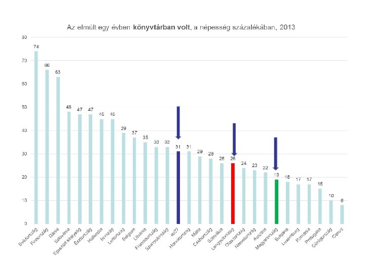 Statisztikai évkönyv 2014 8500 szolgáltatóhely 152 milliós állomány 2, 3 millió regisztrált olvasó 36 millió kölcsönzött könyvtári egység 9981 fő munkatárs 8399 fő Szakmai munkakörben és jogviszonyban 5570 fő települési könyvtárban 5028 fő könyvtáros 2976 fő települési könyvtáros Forrás: EMMI