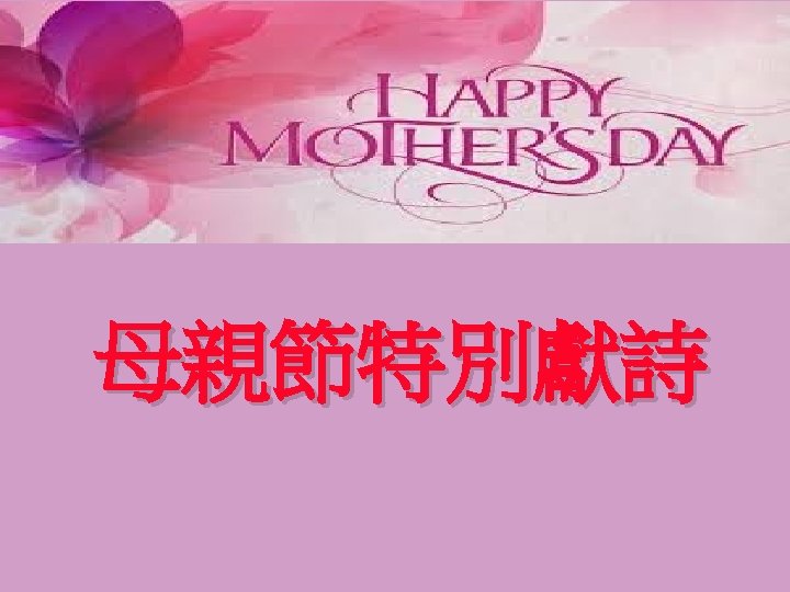 只有母親所流眼淚, 在我一生中最可貴 , 每日為我罣心,每夜為我祈禱, 使我痛苦中得安慰。 The tears shed by my mother is the most precious thing in my whole life. She cares for me every day, she prays for me every night, thus it brings Comfort to my painful soul.