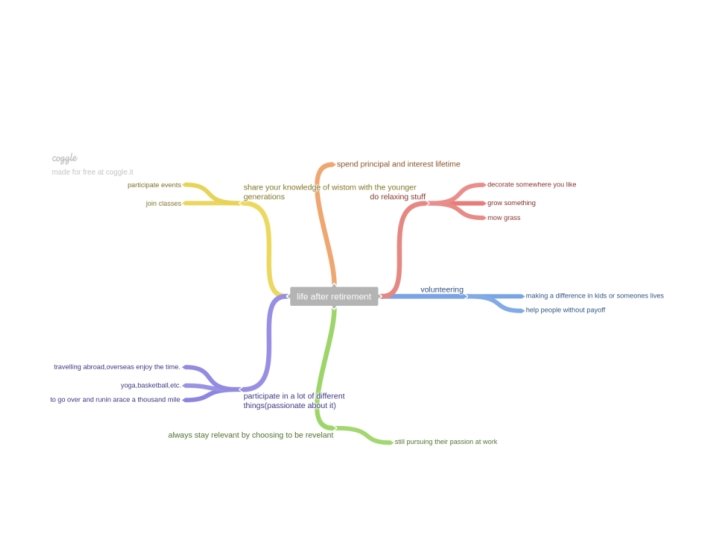 After retirement • Saving enough money for after retirements is important, but there are more. After retirements, you will have hours of free time to fill, so what can you do for your new life? How can fill it correctly? There are many ways to do that like; travel, volunteering, learning something new. • Travel is the most common ways for retirees. Many people have desires to see the world, and after retirement they have time and money to afford it, they have more freedom to travel, so they went to quick trips and they experience another culture, but mostly this is a temporary situation. They search for more regular things to create their own new routine. • Volunteering is the most saticfying activity for retirees. They look for a volunteer position that matches their interests and skills they have. They can work for charities or in an area they think is important. Even helping a child involve this. • Retirement is the perfect time to acquire new skills or improve themselves about many things like new hobby, learning languages or even exercise. It is time to experience new things and try to be succes in it. After a certain age many people thought it is enough for them, but it should not be enough, because in that time a new life just begin and it have to lead new things. • In conclusion, retirements is not an end. It is a beginning of new life. It contains much more beatiful things in it. If you fill it in the right way, you can live like how ever you want. The most important thing is remembering one thing. The life has much more things than you lived. They all are just waiting to come to the light.