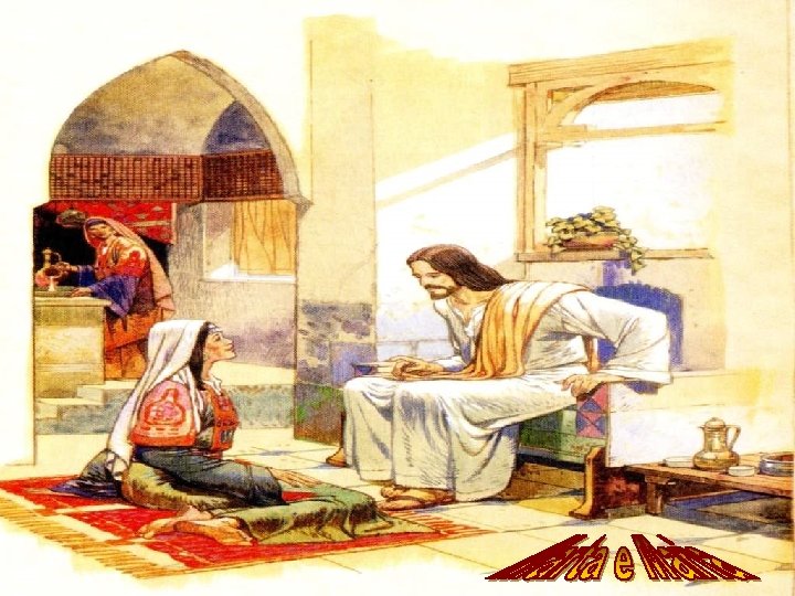 Quem são as Martas e Marias, HOJE? - Na Vida Prática: Você valoriza mais as pessoas, ou as coisas, os trabalhos, a casa, os negócios? - Na Família. . . > Você, Esposa, costuma acolher com carinho e com atenção o seu esposo que chega cansado do trabalho ou o seu filho que retorna da escola? > Você, Marido, mesmo cansado, escuta com interesse, sua esposa que deseja lhe contar como foi o dia? > E você, Jovem sabe dar a devida atenção a seus pais, que trabalham o dia todo por você?