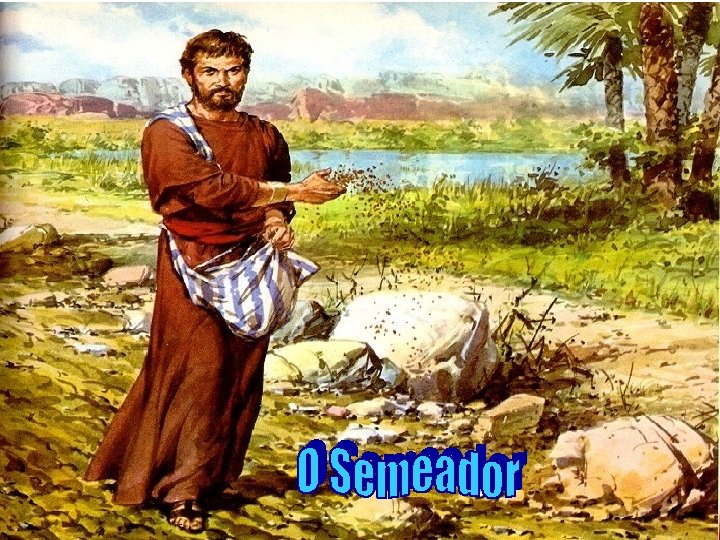 "O Semeador saiu a semear. . . a semente". Parte caiu: - no caminho. . . os pássaros vieram e as comeram. . . - no terreno pedregoso: brotou e logo secou. - no meio dos espinhos: os espinhos cresceram e sufocaram. . . - na terra boa: produziu 30, 60, 100 por um. . .