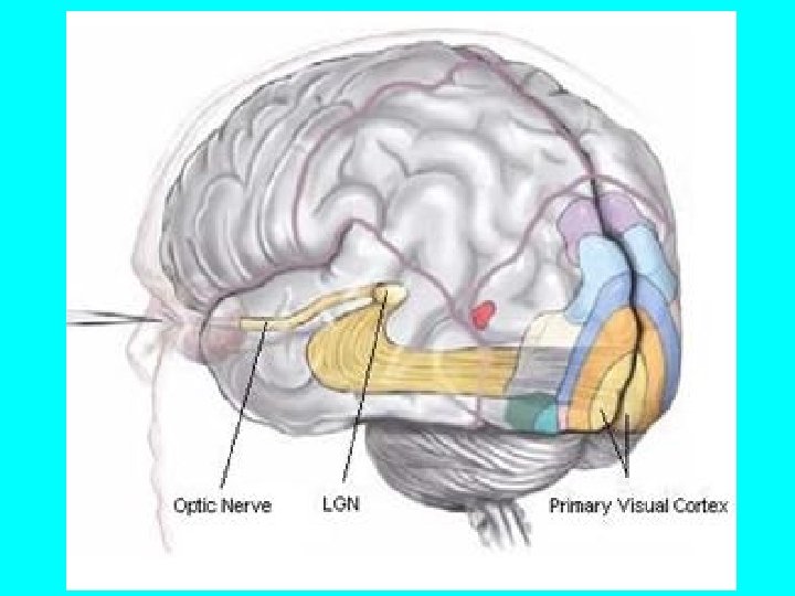 • ← klinikai bizonyítékok: különböző vizuális zavarok (vizuális agnosiák) → pl. : mozgási agnosia (objektum elmozdulását nem ismeri fel), achromatopsia (színlátás kiesése), prosopagnosia (arcfelismerési képtelenség <= alakfelismerés elvész)