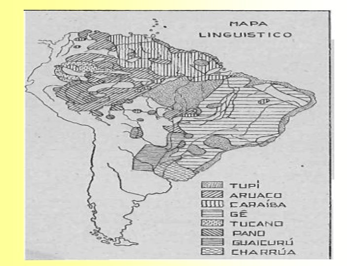 Língua Geral Amazônica Desenvolveu-se inicialmente no Maranhão e Pará, a partir do Tupinambá. q Desde o final do século XIX, passou a ser conhecida também pelo nome de Nheengatu (ie’engatú = “língua boa”). q q Apesar das transformações, continua sendo falada nos dias de hoje, especialmente na bacia do rio Negro (rios Uaupés e Içana).