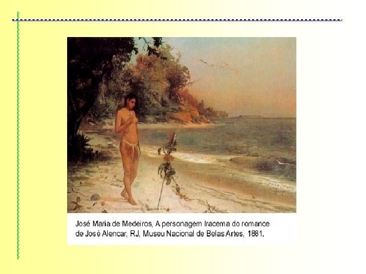 IRACEMA A obra conta a história de amor vivida por Martin, um português, e Iracema uma índia tabajara. Eles apaixonaram-se quase que à primeira vista. Devido a diferença étnica, por Iracema ser filha do pajé da tribo e por Irapuã gostar dela, a única solução para ficarem juntos, é a fuga. Ajudados por Poti, Iracema e Martim, fogem do campo dos tabajaras, e passam a morar na tribo de Poti (Pitiguara). Isso faz com que Iracema sofra, mas seu amor por Martim é tão mais forte, que logo ela se acostuma, ou pelo menos, não deixa transparecer. A fuga de Iracema faz com que uma nova batalha seja travada entre os tabajaras e os pituguaras.