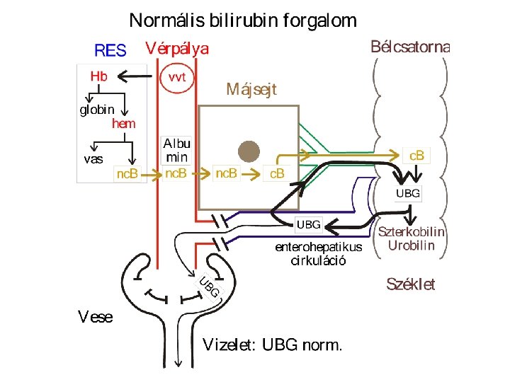 Öröklött hiperbilirubinémiák • konjugálatlan – Gilbert (csökkent UGT 1 A 1 akt. , felvételi zavar) – Crigler-Najjar I. típus (nincs UGT 1 A 1 akt. ) – Crigler-Najjar II. típus (közepes UGT 1 A 1 akt. ) • konjugált – Dubin-Johnson (MRP 2 mutációja) – Rotor (ismeretlen) UGT 1 A 1 = bilirubin - UDP glukuronil transzferáz MRP 2 = multidrug resistance associated protein 2 (a konjugált bilirubin epébe való transzportjához kell)