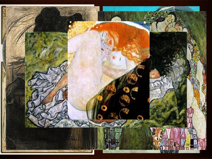 2) Szecesszió ‘kivonulás’ latin • Dekorativitás • Lendületes vonalvezetés • Erős stilizáció • Lila, olajzöld, rózsaszín, májszín Irodalom: • Túldíszített stílus • Bágyadt hangulat • Halálvágy • Betegség erotika • Misztika
