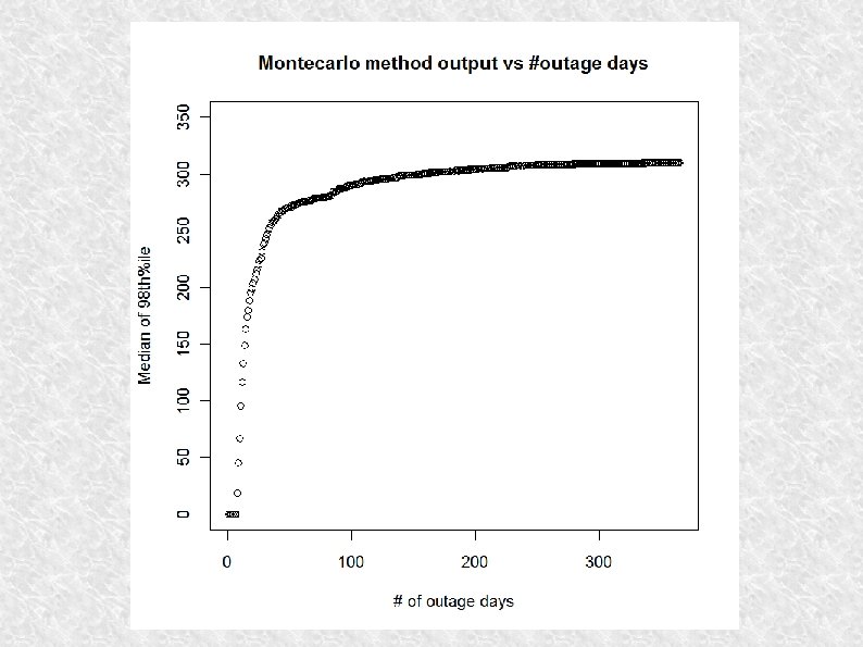 Chronology Investigated effects of sampling frequency on computed 98 th percentile (1: 1 to 1: 6 day rates) Applied Monte Carlo to sample observed daily concentrations Applied same Monte Carlo method to model output with similar results Monte Carlo method seemed appropriate to apply to evaluate impacts of intermittent sources on a statistically-based metric