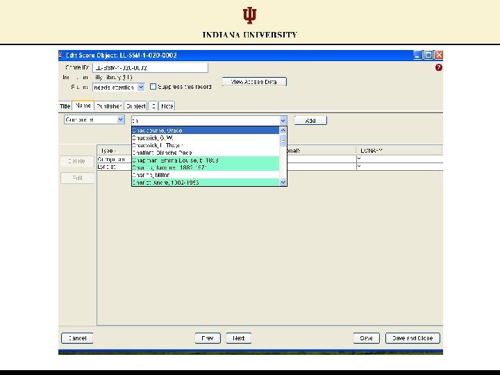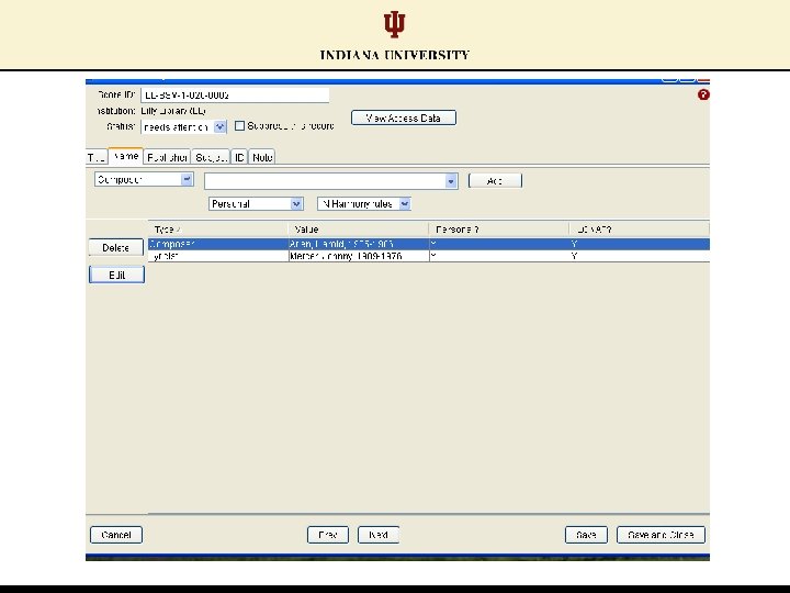 Getting Data Into IN Harmony 2 primary data sources • Cataloging client • Image QC/upload application Other data sources • XML data exported from other cataloging systems • Score images exported from older systems IN Harmony – DLP Spring Forum 2008 April 28, 2008