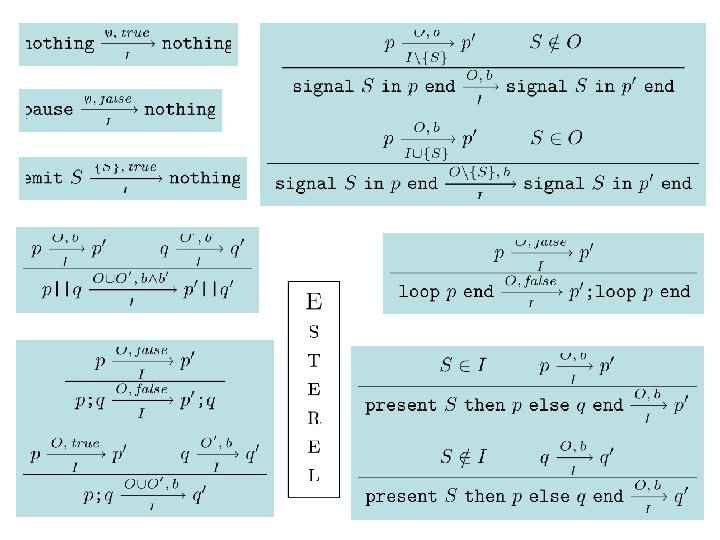 Example • pause • local signal declaration • signal emission • test • loop • parallel composition • sequence