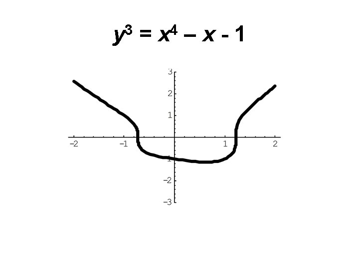 y 3 = x 4 + xy + 5 2) Convergents of continued fractions 3) Fermat’s method of descent 4) Bound and search Check y 3 - x 4 – xy = 5 No other solutions for -10, 000 < x < 10, 000