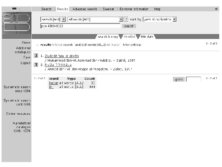 http: //www. sub. uni-goettingen. de/ebene_1/orient/1_aab. htm Oriental reading room, Göttingen UL Follow the link for Asien. Afrika-Bibliothek and click on OPAC. This will bring you to http: //opac. sub. unigoettingen. de/ Choose English as an interface language, if you do not read German.