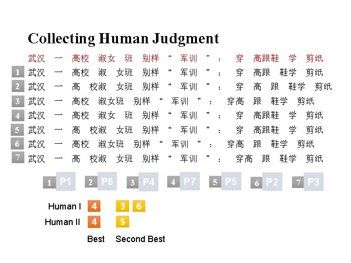 Transfer the Idea in Psychometrics to NLP System Evaluation Standardized test à e. g. Word Many subjects segmentation à Diverse segmenters Define the difficulty of an item in the test according à Define the difficulty of a to the collective test case according to performance. the collective performance of the NLP system.