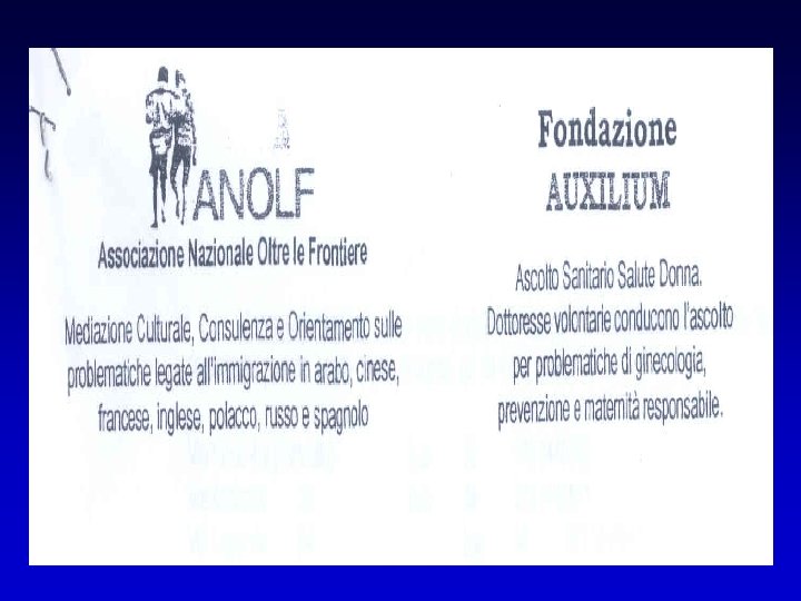 Neonato STP • Ufficio stranieri di Via Ilva : Assistenti Sociali • Conoscono le leggi, le risorse e gli obblighi particolari (es. art. 18) • Solitamente demandano ai volontari : -Rete Mamma e Bambino (solo per regolari) - Padre Cesare (senza Bambino) -Suore di Madre Teresa (con o senza bambino)