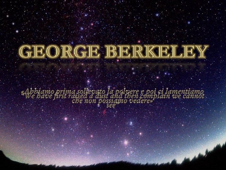IMMATERIALISMO Le cose materiali esistono soltanto nella nostra testa perché le idee che si estrinsecano come percezione si concretizzano alla nostra coscienza. Nel Trattato sui principi della conoscenza umana, pubblicato nel 1710, Berkeley dice: "Le idee che ci facciamo delle cose sono tutto che possiamo dire della materia. Perciò per "materia" si deve intendere una sostanza inerte e priva di alcun senso, della quale però si pensa che abbia estensione, forma e movimento. È quindi chiaro che la nozione stessa di ciò che viene chiamato "materia" o "sostanza corporea" è contraddittoria. Per Berkeley tutta la realtà si riduce quindi all'idea che di essa ne abbiamo; ma questa idea non nasce solipsisticamente dalla nostra attività percettiva, ma è indotta in noi dall'esistenza di Dio; le idee sono cioè azioni di Dio sulla nostra mente. Al contrario, ammettere l'esistenza della materia significa negare Dio e spiegare le idee come conseguenza dell'azione della materia sulla nostra mente. Pertanto, il materialismo conduce all'ateismo, l'immaterialismo è invece il fondamento stesso della religione.