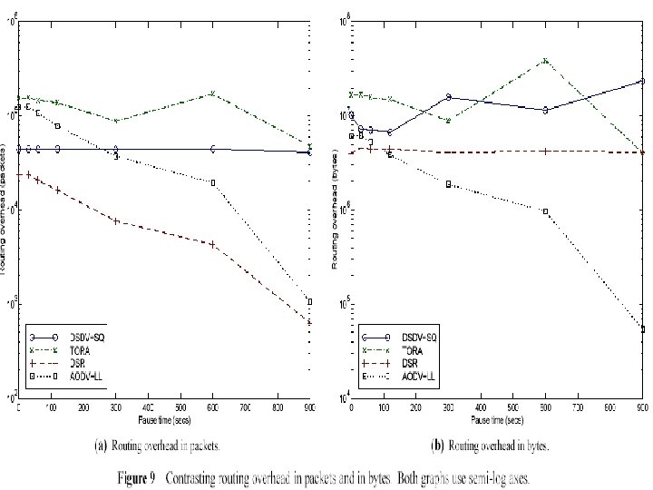 Additional Observations • OH Bytes vs. Packets? – DSR clearly wins in ‘bytes for the buck’, but does it matter? • DSDV vs. DSDV-SQ – Sends triggered update for each new seq. number – DSDV requires that they only be sent when a new metric is received for a destination • Link breakages are not detected as quickly