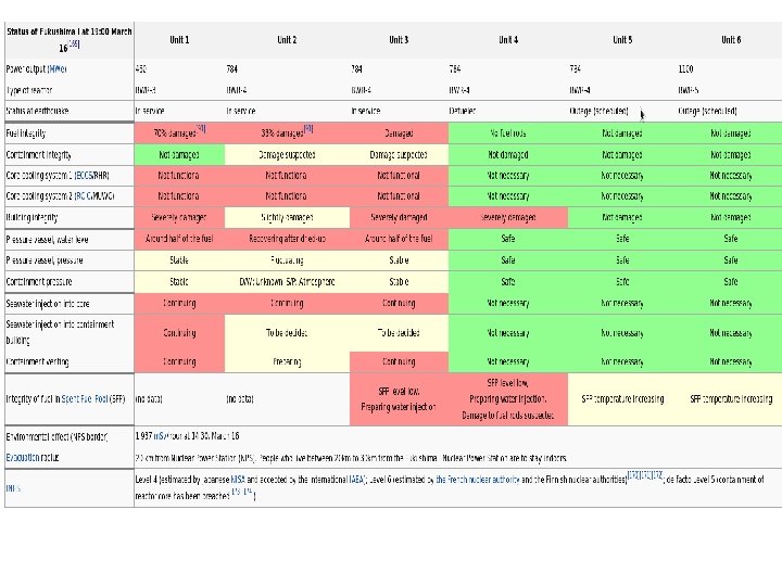 On Saturday 12 th March the operators had no outside help All helicopters doing more important work no one to immediately reconnect electricity By Thursday March 17 th electricity reonnected helicopters available. Water started cooling eveything My prediction (made first on March 12 th): Few, maybe no one will get Acute Radiation Sickness. With no large cesium releases the number of CALCULATED cancers will be close to zero
