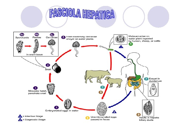 Daur hidup Memiliki dua sucker, mengelilingi mulut dan disebelah ventral Siklus : telur – mirasidium – sporosit – redia – serkaria – metaserkaria – kista - cacing dewasa