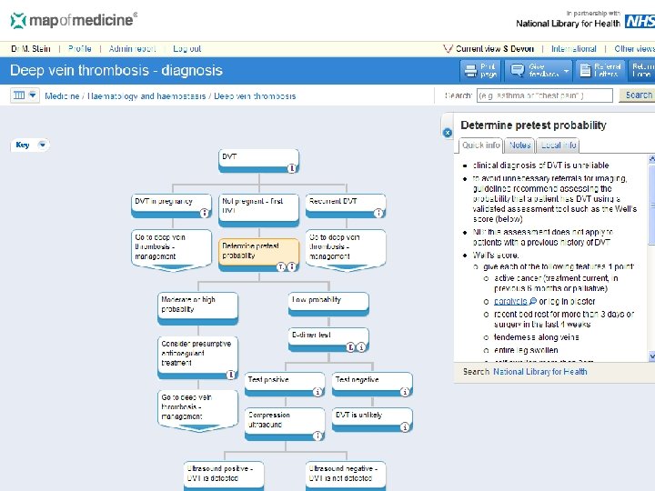Refining DVT diagnosis in primary care • • >140, 000 referrals for ? DVT/year in UK 80 – 90% do NOT have DVT Need to refine tests in primary care Clinical Decision Process including nearpatient-testing • ‘Safely Ruling out Deep Venous Thrombosis in Primary Care’. Buller et al. Ann intern Med. 2009; 150: 229 -235 • One PBC consortium implementing.